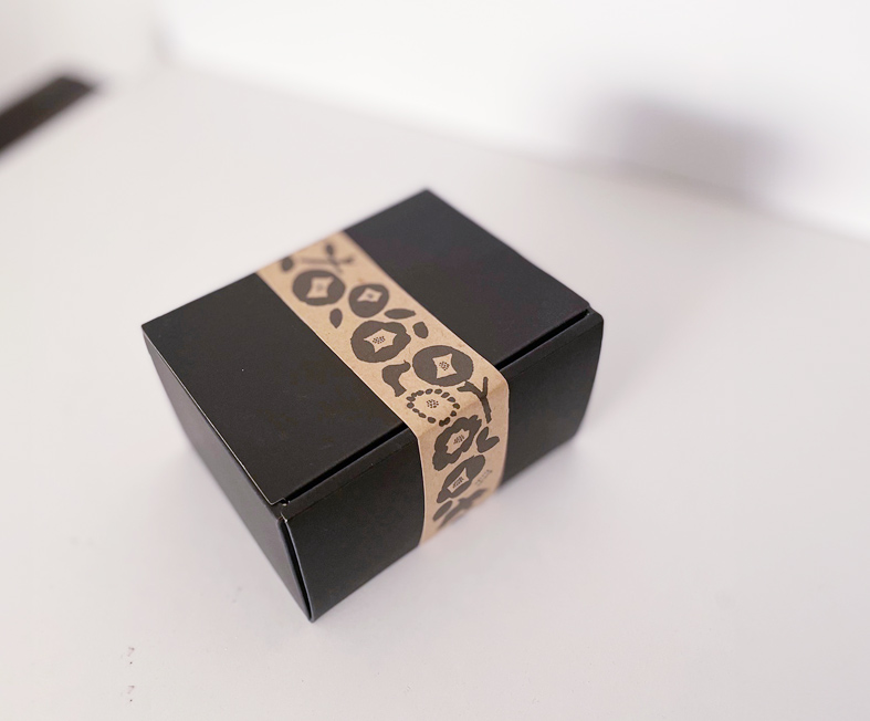 ↑黒や白の箱とも相性がよく、素材感のあるクラフト紙だからこそ、
